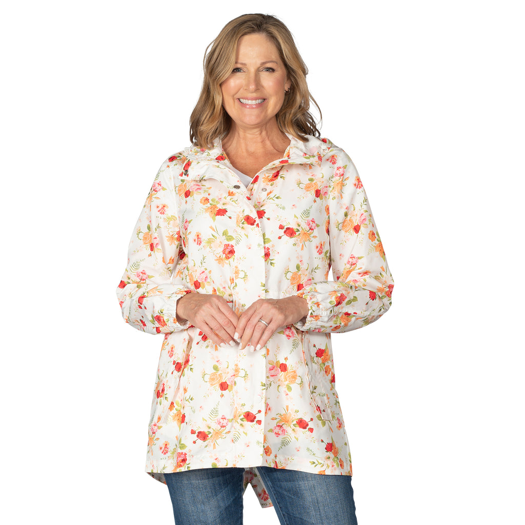White Floral Hooded Drawstring Raincoat