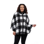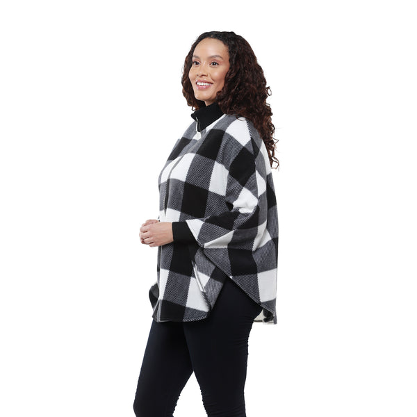 A great addition to your wardrobe, the buffalo check Paige Full Zip Poncho is as cute as it is cozy.  Full zip for ease of getting on, a poncho is the perfect layer for home or office as it drapes over any outfit wonderfully.  Two zippered pockets to keep your valuables safe, and a knit collar for a functional yet retro flair.