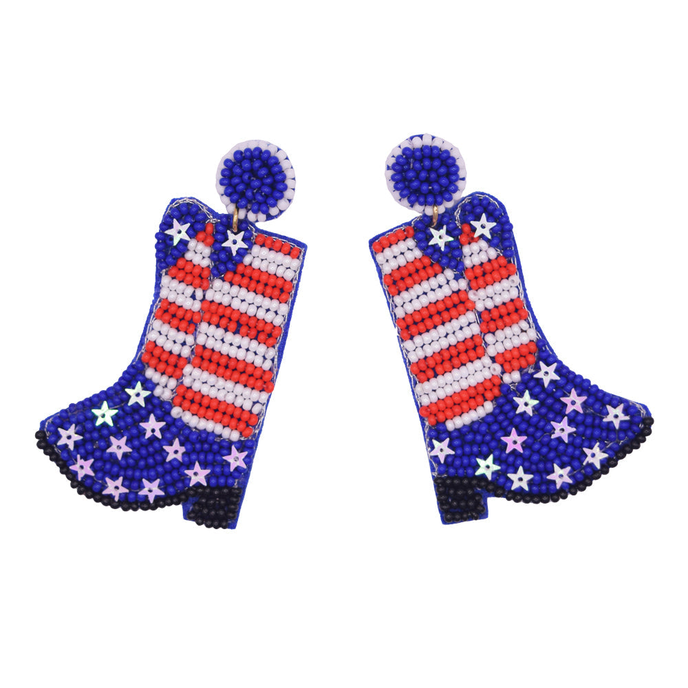 These cowboy boot inspired earrings will make you the life of the party! Wear these fun earrings to your next patriotic gathering and show off your patriotic style. These beaded earrings are the perfect addition to any red, white and blue outfit. They are guaranteed to start some conversations.