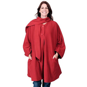 Suzie is a great coat for those of us who lose our scarves! Super warm and roomy cape, with an attached scarf to keep out the cool breezes. Matching Gloves with Sherpa Trim are an added bonus! Double button closure.