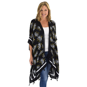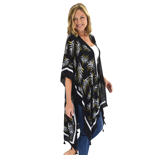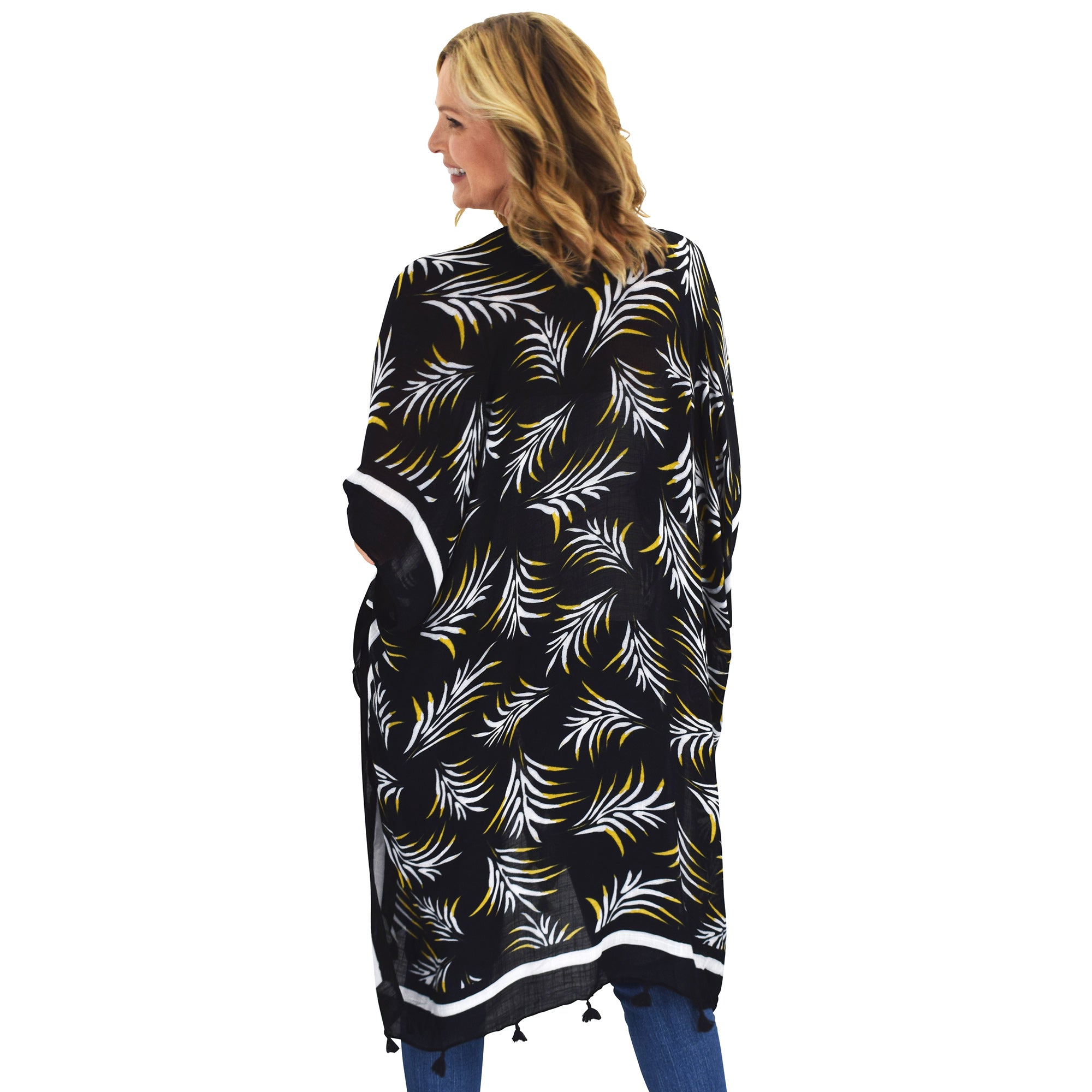 Elegant and casual at the same time, the feel of viscose is like no other. The Emma Kimono is a great topper to wrap around you, tie in the front or let it sway in the wind. The goldenrod black and white design is sure to pop any outfit, so wear it with jeans, to the beach or out on the town and you are guaranteed to get compliments.