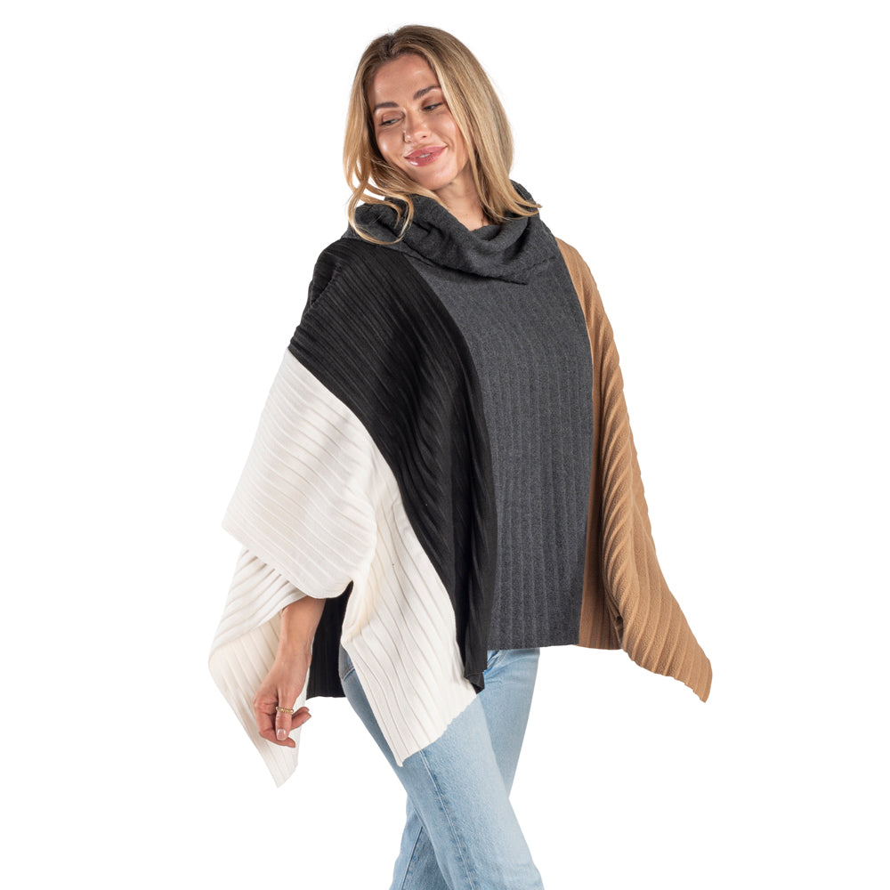 Color Blocked Cowl Neck Pleated Fleece PonchoSKU: LDS-987-WBCC