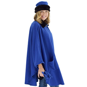 Le Moda Women's Black Fur Collar Polar Fleece Wrap with Matching Gloves and Hat-One Size Fits All at Linda Anderson. color_royal