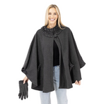 Le Moda Women's Ruffed collar Fleece Wrap with Matching Gloves and Hat - One Size Fits All at Linda Anderson. color_charcoal